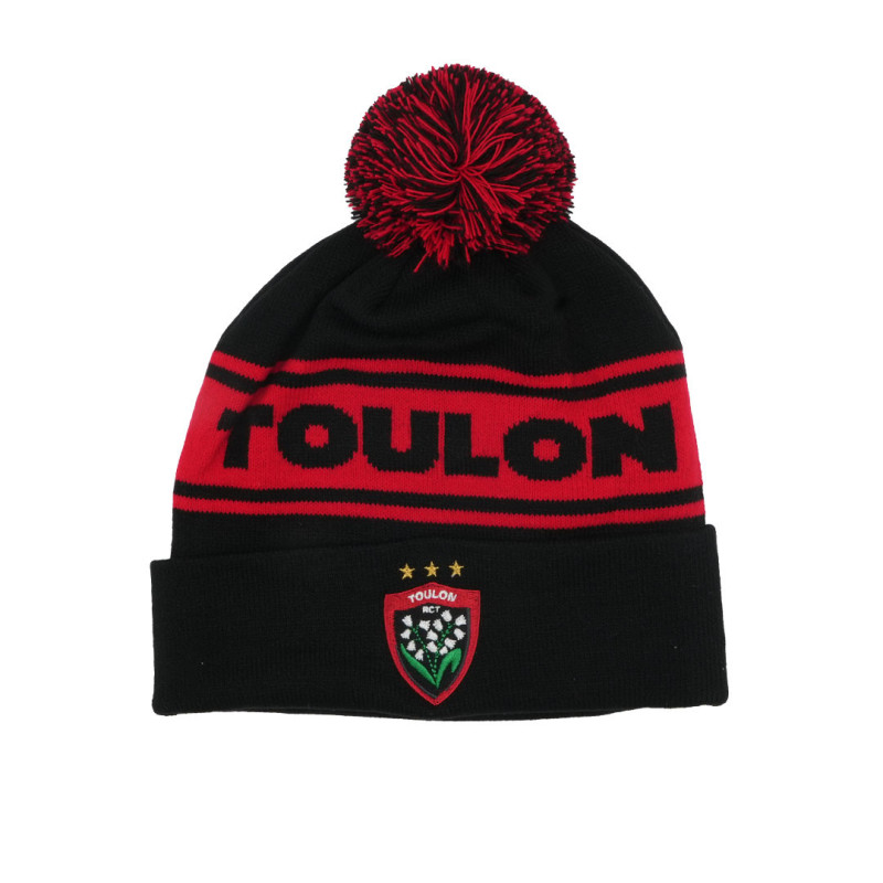 Soutiens le Rugby Club Toulonnais avec le bonnet noir à pompon Toulon 25-26. Chaud, stylé et confortable, il t’accompagne tout l’hiver pour afficher fièrement les couleurs du RCT. L’accessoire parfait des supporters Rouge et Noir !